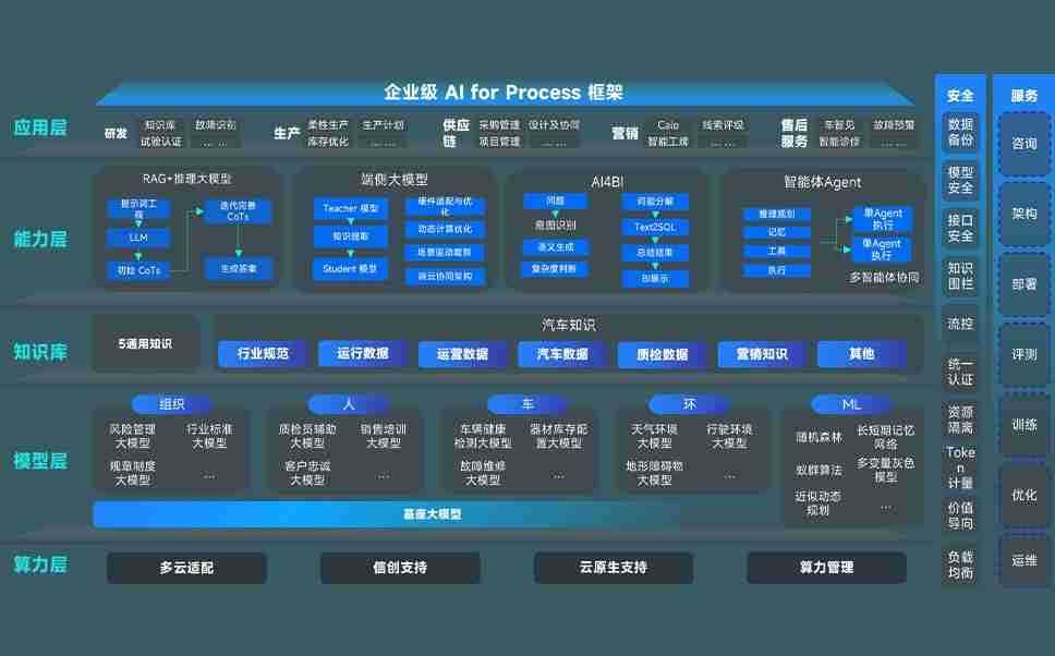 端到端的一站式AI工作空间深度融合了从企业战略规划到日常经营的全流程业务板块,,,,定向解决车企内部领域多、、部门多、、、链条长、、场景碎片化等难题,,,,支持车企快速构建以AI为核心的生产力写作体系,,,,实现任务执行与AI能力的无缝集成与交互